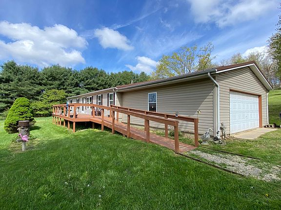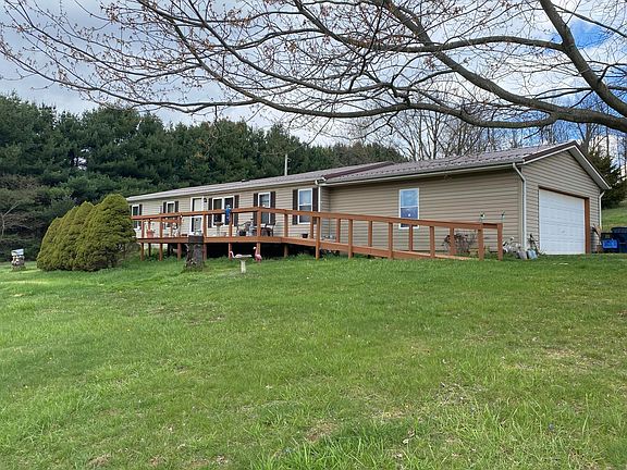 3 BDR Ranch w/ 2 car attached garage sitting on over 2 acres of hillside into wooded area. New Aluminum Roof - 6 mos new. Home uses wood burner for heat but has FA gas furnace. (propane option for this parcel) Seller states well insulated walls, floors and ceilings. Home as a leased water softening system. Garage is 24 x 24 . Front Deck is 34 x 12 w/ ramp. Water lines have been heat taped to prevent freezing.