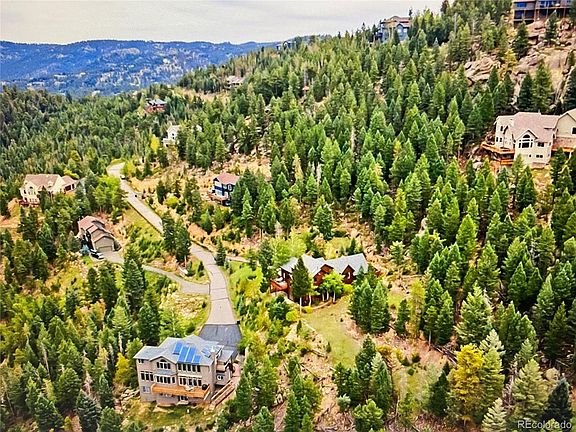 Magnificent panoramic mountain & valley views from every window of regal Mount Evans & Longs Peak. Immaculate 4bed/4bath is perfectly situated on 1.28 acres at the end of a quiet & private cul de sac, truly a premium locale offering privacy, mountain living with easy access to all amenities. Walk into a regal 2 story grand foyer offering generous high vaulted ceilings from the entrance throughout the large great room filled with a wall of windows, hand crafted stone fire place which is the heartbeat of the home. Wide open easy flow floor plan takes you from great room filled with newly refinished hardwoods, loaded with snow cap mountain views into a chef's dream kitchen with breakfast nook with more views , large island ideal for cooking & entertaining, warm maple cabinetry, new stainless steel appliances and fresh granite. Enjoy the flow of living room to kitchen to formal dining area ideal for entertaining. Enjoy large newly stained deck off of the living room with retractable awnings that truly allow for captivating views of mountains, wild life and high soaring birds. Upper level boast a generous and private master suite loaded with more windows and views and offers a deluxe 5 piece bath. Two upper level bedrooms are large in size filled with natural light, jack & Jill full bath and are ideal for over flow. Completely finished lower level has full walkout to more views, large entertaining area, media room & bonus room ideal for home office & has 4th bedroom with full bath & generous walk in closet. Lower level boast an additional huge storage area. Turn key ready and gently lived in all the way around. Enjoy easy convenient main level newly remodeled laundry area, extra bonus work room in garage & additional parking for over flow. Dream living in Evergreen. Two new furnaces & new hot water heater in mint condition. If you have been shopping for views, look no further! Copy/Paste Tour: https://youtu.be/uk5yC3rEK44