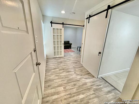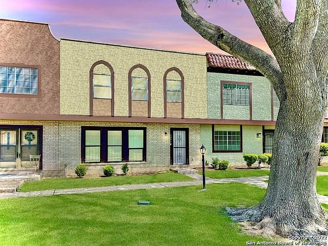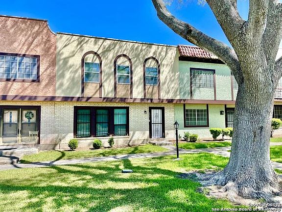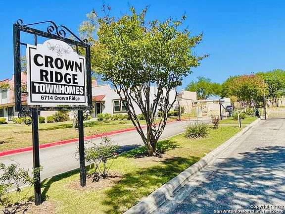 MOVE IN READY, BEAUTIFULLY DESIGNED AND REMODELED 3 BEDS, 2.5 BATHS TOWNHOME WITH MANY UPGRADES IN THE CROWN RIDGE GATED COMMUNITY. Granite countertops in the kitchen, stainless steel appliances, solid hardwood breakfast bar countertop, separate dining built-in buffet table/bar space, farmhouse style sliding doors to baths, bedrooms, office space, French doors to utility room, built-in surround sound speakers in family/game room, walk-in closets, open concept layout, floating staircase, double vanities in baths, upgraded hardware and tiled baths too; plus, so much more in quality additions. Double carport with rear access, outdoor storage room, private community amenities to include a swimming pool, exercise room, meeting space, basketball court, and playground for the kids. HOA maintains all of the grounds so you don't have outdoor maintenance to worry about. Near Downtown SA, Airport, Randolph AFB, Fort Sam Military Space, Shops, Restaurants, Entertainment, and Major Highways within a few minutes. Schedule your private viewing today!