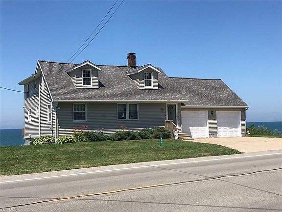 An ABSOLUTELY astonishing view of Lake Erie and some of it's legendary sunsets can be yours in this lakefront 3 bedroom 1.5 bath Cape Cod. You get a million dollar view for just $309,900! Currently being used by the owner as his personal law office and think tank, you're sure to love the rustic interior, hot tub, walk -out basement, firepit, patio and bench seats with tremendous lake views. There is 1 first floor bedroom and a main bath on the first floor, a 2 car attached garage, super private deck off the living/dining room, AC and a 2nd floor master bedroom with 1/2 bath that offers wonderful lake breezes, sounds and views! If you can find a better lake view than this one - at a lesser price, you better buy it!