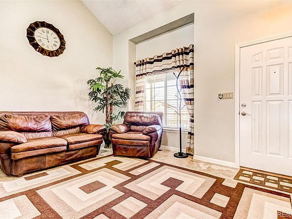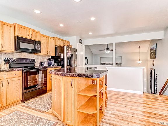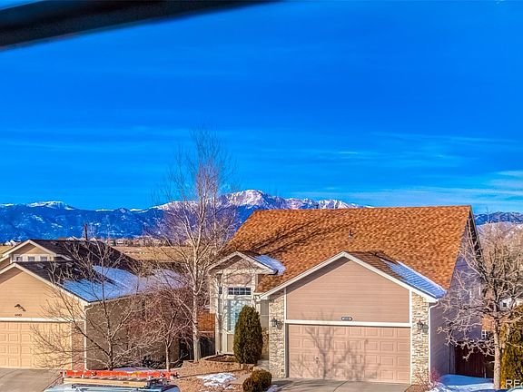Absolutely exquisite 4-bedroom home nestled on a fenced and pet-friendly lot in the Sundown North community and offering panoramic Pikes Peak and Front Range views! A sunlight-filled open floor plan, soaring vaulted ceilings, rich hardwood laminate and tile flooring, spacious kitchen with granite tile and stainless steel/black appliances, beautiful master suite with an attached bath and breathtaking views of sunsets over the peaks, walk-out lower level with a warm gas fireplace, rear redwood deck for outdoor living and entertaining, and an excellent location in D-11 schools all showcase this immaculate home. A covered front porch overlooking Pikes Peak welcomes you inside to the tiled living area with 2-story ceilings and picture windows framing mountain views. The open kitchen offers ample cabinetry and countertop space, granite tile, island and counter bar for casual dining, walk-in pantry, and included stainless/black appliances. The nearby dining area has bay windows looking out on the fenced rear yard below. The generous master suite is an ideal retreat to relax and unwind with vaulted ceilings, plant/art ledges, attached full bath, walk-in closet, window seating, and beautiful panoramic mountain views. Two additional spacious upper bedrooms share a full hall bath. The walk-out lower level features a family room with a tiled gas fireplace perfect for cool Colorado evenings and opens to a redwood deck and yard for outdoor living and play. A private lower level bedroom, full bath, and multiple storage closets offer plenty of space for family and guests. Other home features include central A/C, custom window coverings, ceiling fans, vinyl windows, composite shingle roof, rear storage shed, extended rear yard gate, and attached 2-car garage. Featuring comfort and easy living, this gem is not to be missed!