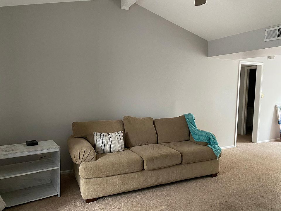 Very large, upstairs, one bedroom, one bath condo. Beautiful, open , lots of light. Backs to wooded green belt. Vaulted ceilings and fireplace in living room. Granite counters, large pantry. In-unit washer and dryer. Reserved parking. Huge bedroom with walk in closet. Overall outstanding property you won't find anywhere else in South Tulsa with its unique view from the private balcony to the treelined streets to the close proximity to shopping and expressways, this spacious apartment is a must-see! *pantry *large walk in closet *granite counters *vaulted ceiling *washer dryer in-unit *large bedroom *backs to gorgeous creek and wooded green belt *reserved parking One year