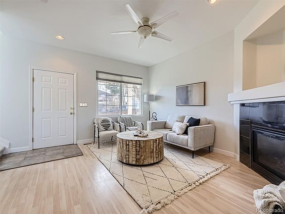 Sharp updated townhome in Littleton! 2 bed, 3 bath with 2 car attached garage. Enter into the spacious living room featuring a gas fireplace. Open dining area has access to the balcony with a new sliding glass door. Updated kitchen has tile floor, newer appliances, gas range with air fryer, and laundry closet. Upstairs is the primary bedroom with mountain views and walk-in closet. Primary bath has upgraded tile floors and shower tile around the large soaking tub. The secondary bed has it's own private bath. Large windows bring in lots of natural light - Windows new in the last 2 years with transferable warranty. New energy efficient thermostat for heating and air. The two car attached garage is located on the lower level. This home is situated in a desirable community close to parks, schools, and shopping centers. See this and make it your Home Sweet Home!!