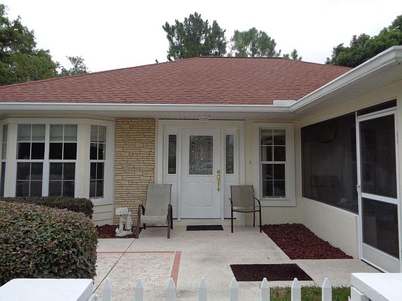 Modified Coventry with kitchen open to dining room. Large breakfast bar, 2 pantries, eat in area and indoor laundry. One and half car garage with screens and a new double driveway for guests. Formal dining room, large open living room with adjacent office/den with french doors. King size master bedroom with Huge walk in closet, queen size guest room and guest bath. Freshly painted inside, new commodes, some new faucets, laminate flooring. Wonderful courtyard with screened lanai. Maintained lot so lawn care is included. Move in ready too! 30 year roof.