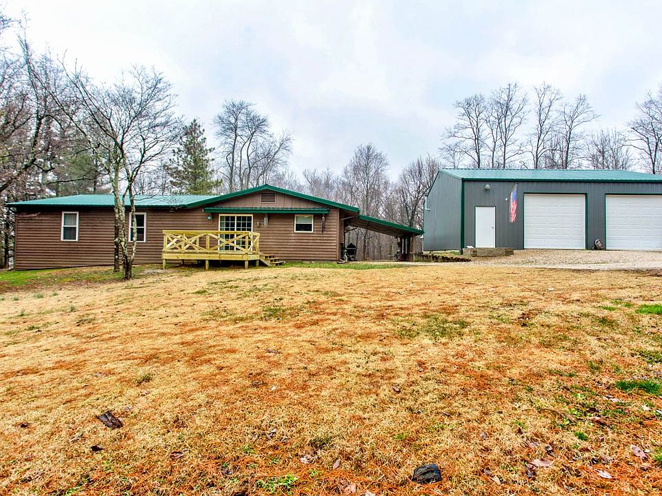 Peaceful and secluded, this one story cedar sided home is nestled among mature pine trees in a terrific location. Situated in the middle of 1.39 acres, this home boasts over 2500 sq. ft. of living space on one level. The house has hardwood floors in the central living spaces and an open concept. This 4 Bed/2 full bath home offers plenty of room to accommodate a family. There is a dedicated laundry room as well as an extra room to accommodate a family. There is a dedicated laundry room as well as an extra room that can be used as an office or study. The outdoor living space is perfect for both work and play. Drink your morning coffee and enjoy nature on one of two decks. There is a carport attached to the home and a 30 x 36 fully insulated pole barn next to the home. The pole barn has a gas heater with 2 bays in front and a door in the back. The garage even has a full kitchen area. A hunters dream! This property is perfectly located between Hwy and Holland. It offers easy access to Evansville, Louisville, Huntingburg, & Jasper.