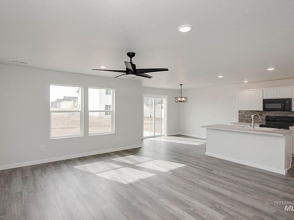 Get $25K now thru 1/31 with the New Home Era bonus! The Poe 1471 in Meridian, Idaho is move-in ready and waiting for YOU! Enjoy a thoughtfully laid out living space with an open concept main level and all three bedrooms tucked upstairs. A tastefully appointed kitchen features roomy island overlooking your living room, sleek white soft close cabinets & full tile backsplash. Easily slip outside for some fresh air on the back patio off the dining room. Retreat upstairs where the primary suite and two other bedrooms await. Wake up and wind down in the en-suite complete with walk-in shower, dual vanity sinks and walk-in closet. Photos are actual home.