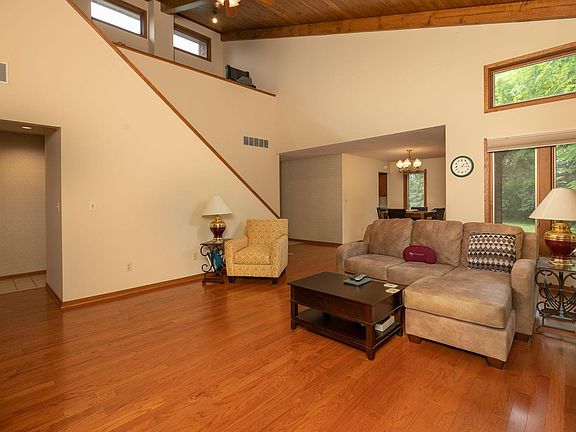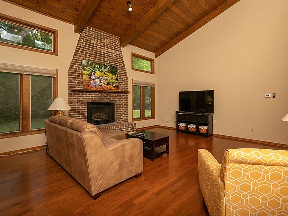 Beautifully maintained and updated 3 bedroom, three bath townhome in quiet area. Extra spacious floor plan with master bedroom and bathroom on the main floor. The living room has soaring ceilings, with a gas fireplace and large windows. There is an extra bonus space on the main floor that is currently being used as a family room and attached sunroom. The sunroom has an awning over the large windows to enjoy any time of the day. The dining room has triple doors with access to the deck where you can enjoy a private, wooded setting with spacious lawn and access to the trail. The kitchen has been beautifully redone with granite countertops and room for a breakfast nook. Upstairs are an additional two large bedrooms, bath and a loft area. Large storage area is right off of the loft. The roof was replaced last year. Do not miss this one!!!