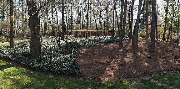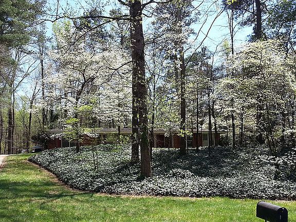 Come live in a forest! Cozy 3 bedroom / 2 bathroom Mid-Century all-brick rancher, located in prestigious Riverside, minutes from in-town Sandy Springs, Georgia. The home offers single-level no-step living and many updates including: * Honey oak hardwood floors throughout. * Custom crafted hardwood cabinetry with doors of figured cherry veneer, roll-out birch storage shelves, quiet-close hinges and brass hardware. * Corian kitchen countertops, sink and breakfast bar. * Jenn Air wall oven, Kitchen Aid gas cooktop. * Two Velux skylights for plenty of light in the kitchen and the dining room. * 6-ft tall floor-to-ceiling double-hung windows across the entire front facade. * Pella wood and brass sliding door opens up from the dining room to the back patio. * Extra wide architectural crown molding. * Custom design Carrera marble master bath. Curbless shower with contrsting tile floor mosaic. * Venetian plaster in the hall bath. * Water-saving Toto UltraMax II toilets * Separate laundry and storage adjacent to the carport. * Long azalea-lined driveway. Ample parking for family and friends.