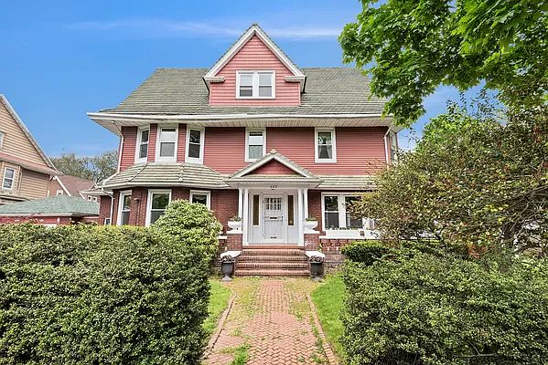 Sprawling Space Inside and Out! Beautiful 3,650 Square foot 6+ Bed, 3.5 Bath on an Oversized 60 x 100 Corner property with a Separate Two Car Garage! Surrounded by tall hedges and fencing for the ultimate privacy, the expansive front and side yard of this bucolic oasis are ripe for endless gardening, relaxation or whatever your heart desires! Upon entering the expansive parlor floor you are greeted by the Center Stair and gracious, inviting proportions that are an entertainers dream. The huge, newly renovated living room has soaring ceilings, a wood burning fireplace, gorgeous, pale, original Parquet floors and windows that fill the room with natural light. The living room flows into a stunning sunroom with motorized skylights and wall to wall windows overlooking the side garden, that could be an ideal home office, Den or work out space! A dramatic arched doorway leads into the elegant formal dining room with coffered ceilings and upholstered walls, big enough for a table that seats 10 or more. Conveniently located off of the dining room is the Huge eat in kitchen that is truly a chefs fantasy! Custom finishes include hardwood cabinetry on every wall for abundant storage, granite countertops, two sinks, 2 ovens, 3 cooktops, 3 dishwashers and three microwaves! There is a convenient powder room off of the kitchen. On the second floor is the giant Primary suite with five windows, all with lovely views of green, two huge closets and a renovated bath ensuite. A door in the Primary bedroom leads to a perfect office with beautiful leaded glass built-ins on every wall, that could also be a great dressing room! The huge and versatile third bedroom, which was originally two bedrooms, has 6 windows that flood the room with natural light, and is currently being used as a family room. The guest bath on this floor has a deep jacuzzi tub, towel warmer, glass enclosed shower and a stackable washer/dryer. On the third floor are 3 additional, large, sun-filled bedrooms and a renovated full bath with tub/shower combo. There are extraordinary original details throughout including gorgeous, multi patterned parquet floors and leaded glass windows. The basement offers great storage space and has a full sized, front loading Kenmore washer & dryer and there is a two car garage with a driveway big enough for two additional cars. All of this just steps to the shopping, restaurants and B & Q trains at Newkirk Plaza and Cortelyou Road.