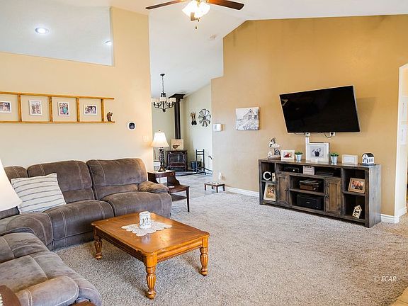 Impeccably maintained Elko model Beck-built residence situated on an exceptional 2.38-acre lot. This 1,678-square-foot home boasts elegant vaulted ceilings and ceiling fans gracing all primary living spaces and bedrooms. The spacious living room affords a stunning vista of the majestic Rubies. Adjoining, the generously-sized dining area features a sliding door to the back patio, a cozy wood stove, offering both ambiance and comfort. One of the four bedrooms, conveniently located off the dining room, is perfect for visiting guests. The kitchen features ample counter space, soft-close cabinets, a breakfast bar, and an over sized pantry. The master bedroom is adorned with elegant crown molding and a generous walk-in closet. Its en suite bathroom includes double sinks and an over sized tub with tiled shelving in the shower. Each spare bedroom is equipped with built-in closet storage and ample space. The laundry room features overhead shelving above the washer/dryer and a capacious storage closet. An insulated 3-car garage with a 220v electric garage heater that provides 682 square feet for vehicle parking or storage. This could be your home sweet home!