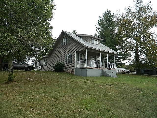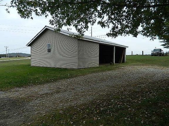 Country Living!!! Vinyl 1 1/2 story - 2 bedrooms, 1 full bath, living room, kitchen, and dining room combo, covered front porch, large closed in back porch, 2 car detached garage all on an acre.