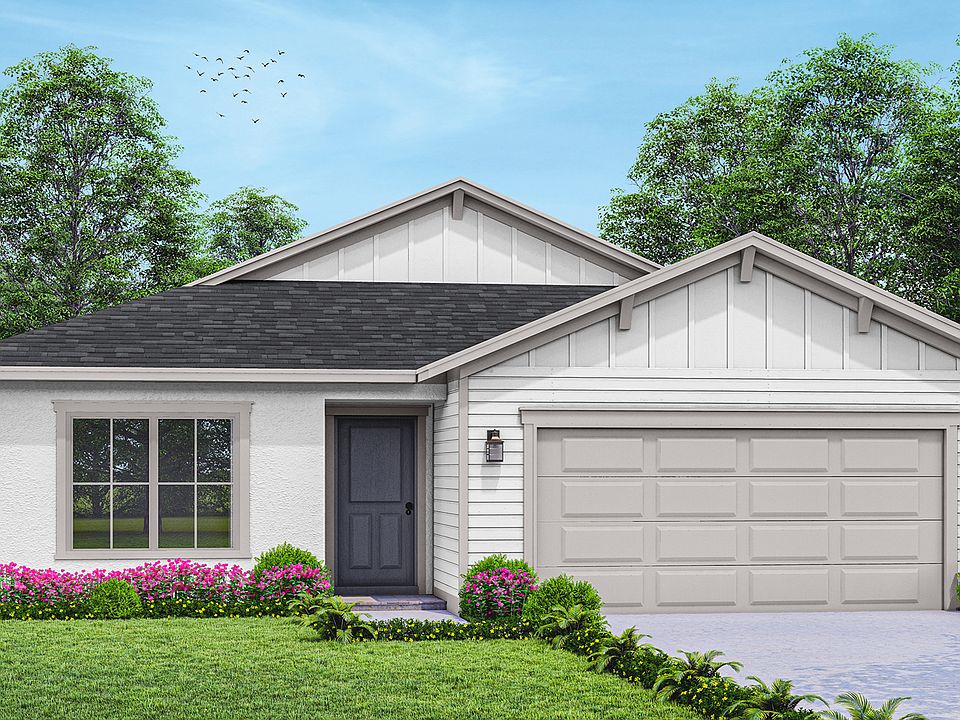 Florida Green Building Coalition (FGBC) green certified home. The Sanibel floorplan layout is one of the amazing plans in the Florida Living Series by Carpenter Homes. This roomy one-story, 4 bedroom, 2 bath has an inviting layout. The kitchen with ample counter space overlooks the impressive great room with a 10-foot ceiling height and adjacent screen-in lanai provide the perfect spot for entertaining. There are upgraded countertops in the kitchen and both bathrooms, stainless energy-efficient kitchen appliances, soft close cabinets, and upgraded flooring throughout the whole home. The home has a spacious Owner's suite with upgraded tiled wall shower and walk-in closet, as well as three additional bedrooms. Additional features of this amazing home include upgraded tiled walls in the 2nd bath/shower, a utility room, energy-efficient R-4.1 insulation on concrete exterior walls, Taexx tubes in the walls, pest control system, and fabric hurricane shutters for all windows. The yard also has an irrigation system.