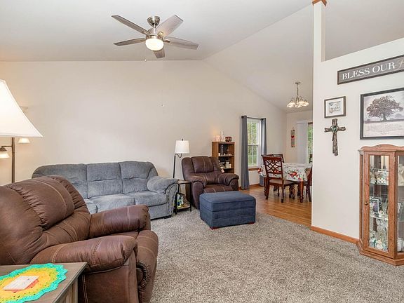 This pristine 3 bedroom, 2 bath ranch home is ready for you! Home features living room with vaulted ceiling that opens to spacious kitchen with pantry and all appliances (new in 2019). The large master ensuite offers a full bathroom with whirlpool tub and walk in closet. 2 additional bedrooms, full bath with double sinks and laundry room round out the main. Washer and dryer included. Outside, sit on your patio and enjoy the beautiful backyard with a line of trees that offer privacy. 2 car garage. HE furnace and central air new in 2019. Schedule your viewing today!