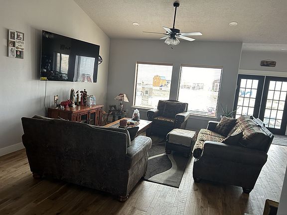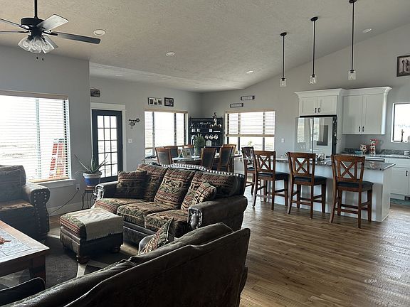 Welcome to your new home, where comfort and style come together beautifully. Step into the kitchen, which features lovely upgraded island countertops and a convenient beverage fridge-perfect for gatherings with friends and family. The dining room has been expanded by four feet and opens up with a full glass door to a large, covered back patio, making it an inviting space for outdoor meals and relaxation. In the master suite, you'll find a spacious shower with stylish tile, an upgraded Euro glass door, a bench, and a waterfall shower head with a hand wand, plus a handy niche for your essentials. The garage has been extended by twenty feet and includes a built-in gun safe, providing both extra space and peace of mind. The laundry room offers upgraded cabinetry and a sink, making laundry day a bit more manageable. Finally, the extended porch adds an extra ten feet of outdoor living space, ideal for enjoying the fresh air. This home is designed for real life, blending modern features with everyday comfort. Home entered for comparable only, contractor is a licensed real estate agent.