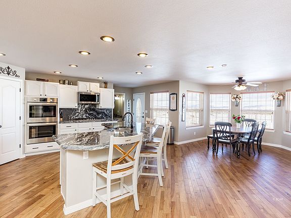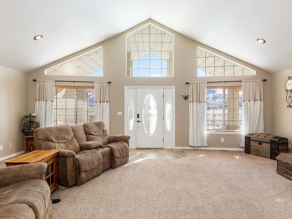 This is a beautiful 4 bed 2.5 bath home in a great location with a large 40' x 60' shop sitting on over 4 acres of land! When you walk in the front door you are greeted by a large living room with high vaulted ceilings and large windows allowing lots of light into the room. As you move through to the dining room you will see the open floor plan of the kitchen/dining area. Some of the highlights for this area include: double thickness on the granite countertops with chiseled edges, granite backsplash that matches the counter top, a built in gas cooktop and double dishwashers. Off this area is a 1/2 bath, perfect for entertaining. Down the hall you enter the master suite. The large bedroom has a tray ceiling, a walk in closet, and a master bathroom with a double vanity that you are still able to make your own space. The other large bedrooms in the home each have 2 closets. The bathroom on this side of the house also has a double vanity sink as well as a shower that is tiled to the ceiling. The mudroom/laundry off of the garage has a built in laundry sink and cabinets. Downstairs is an unfinished basement with a nearly finished room that could easily offer a 5th bedroom.