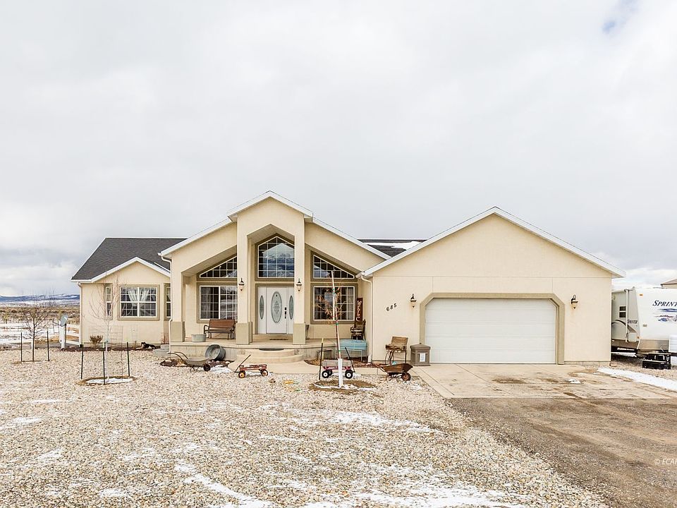 - Exterior Features: Work Shop, View of Mountains, Fenced- Partial, Gutters & Downspouts, Faces: East, Faces: North, Landscaping: Rock, Horses Allowed