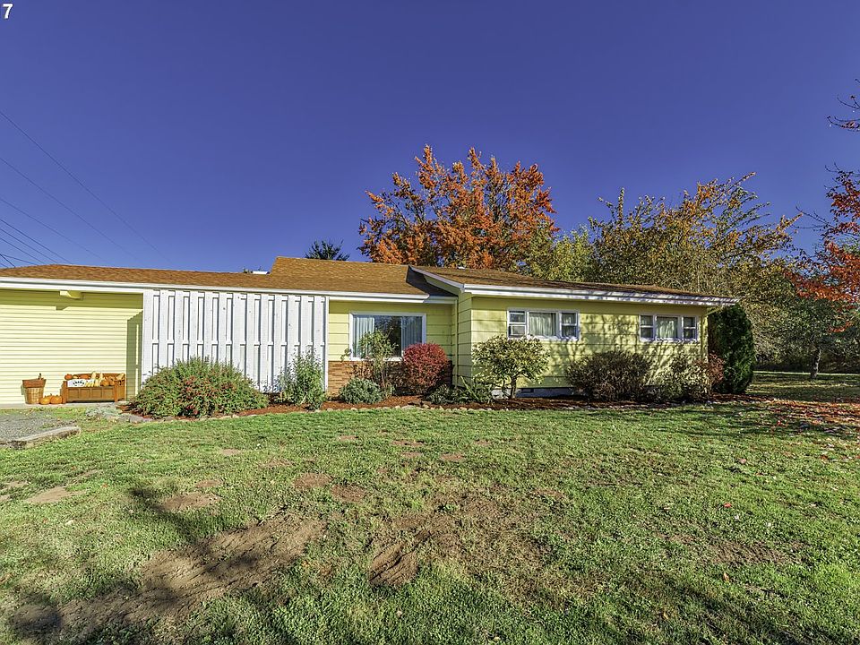 Large farmhome on 4.93 acres. The home is in the county but is a part of Eugene school district. This property has all updated windows, a forced air furnace, a gas FP, a shop area and a barn with electricity. The house uses public water but has 3 wells with 1 being used for irrigation. Buyer to do due diligence on the wells. New septic tank and hot water heater.