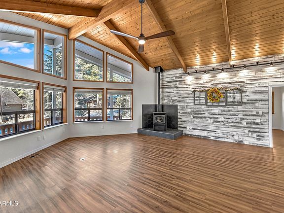 This thoughtfully cared-for 3-bedroom, 2-bath chalet blends rustic charm with modern convenience, offering the perfect retreat for outdoor enthusiasts. With a 53-ft paver RV parking area with hookups, a remote-gated driveway, and an oversized two-car garage, there's ample space for all your recreational vehicles and outdoor gear. The inviting interior features a tongue and groove ceiling, while the split floorplan ensures privacy and comfort. Cozy up by the fire as snow falls outside, or step onto one of the large decks to relax in the serene surroundings. Whether you're hiking, camping, or simply unwinding in nature, this home is the ideal basecamp for Northern Arizona's endless adventures. Be sure to check out the virtual 3D tour! Updates include AC, Furnace, Water Heater and Generator!