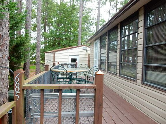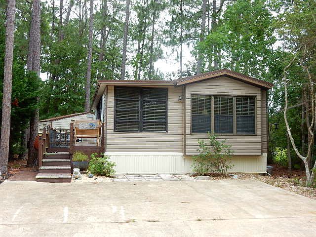Really nice Park Model in Spanish Cove! There is a 8X40 addition that includes another living area, Laundry room & 2nd Bath. 2nd bath & laundry room is accessed off master bedroom. Has barn sliding doors to close off additional living area for privacy. Has new vinyl siding, 2 year old metal roof. Heat pump is 4 years old. Large water heater is laundry room. Appliances 3 yrs old. This is one very nice home. Lot has plenty of concrete parking & very nicely landscaped. Workshop Shed on property. It is being sold furnished. Spanish Cove amenities include year round pool, 2 clubhouses, fishing pier, tennis courts, excerise building & 24 hr security.Buyer to verify any information they deem important. Hurry on this one! Public boat launch & pier in Lillian up Co Rd 99.