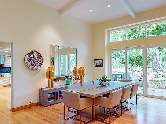 Welcome to your custom contemporary retreat nestled on a lush, wooded acre lot. This exquisite 3-bedroom, 3.5 bath home boasts top-of-the-line features and craftsmanship throughout, creating a luxurious and serene living environment. Step inside to discover quartersawn oak floors and Pella windows that flood the space with natural light, while offering tranquil views of the surrounding forest. The heart of the home is the stunning Neff-designed kitchen, complete with a butler's pantry and high-end Miele, Dacor, and Sub-Zero appliances, perfect for the discerning chef and entertaining alike. Prepare to be wowed by the staircase, a true work of art crafted by renowned metal sculptor Alan Root, adding a unique and elegant touch to the home. The main level is anchored by the private primary suite, offering a peaceful sanctuary with beautiful views. Upstairs, two spacious ensuite bedrooms await, providing ample space and comfort for family and guests. Additionally, a detached studio offers endless possibilities as an exercise room, artist's retreat, or hobby space, catering to your lifestyle needs. Outside, the yard is an oasis of relaxation and recreation, featuring an outdoor kitchen, spa, bocce ball court, and firepit, perfect for outdoor gatherings and enjoying the serene surroundings. Plus, the entire back yard is fenced, providing a safe and secure space for furry family members to roam. Experience the epitome of contemporary luxury living in this meticulously crafted home, where every detail has been thoughtfully designed for comfort, convenience, and enjoyment. Welcome home to your own private retreat in the heart of nature in Cambria.