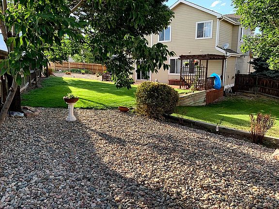 Great Northwest D20 neighborhood. This home has been nicely maintained as well as UPDATED...it and has new carpet throughout as well as hardwood floors in the entry, kitchen and dining area. The kitchen features tile counters, stainless steel appliances and a nice-sized island. The dining area has a beautiful Tiffany light fixture and access to the back deck. There is a gas fireplace and built-in shelving in the main floor family room. A half bath with laundry space can also be found on the main level. The master suite includes a double door entry, a big walk-in closet and a 5-piece bath with soaking tub. Along with the master suite, the upper level also includes 2 additional bedrooms, a full bath and a versatile loft area. The finished basement has another large family room that will be great for a game or media room. There is a 4th bedroom and another full bath as well. There is lots of storage space and a good-sized garage with an opener. The backyard is fully fenced and features mature trees and a large deck with a pergola and a built-in bench.