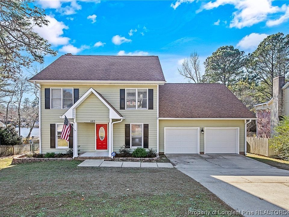 Experience lakefront living in this stunning 2-story home nestled by the water. Boasting 5 bedrooms and 2.5 bathrooms, the main floor offers a bedroom and half bath, while upstairs unveils 4 bedrooms and 2 full baths. Entertain in style with a formal dining area and an inviting eat-in kitchen, equipped with stainless steel appliances, granite countertops, and a convenient breakfast bar area. Sip your morning coffee while soaking in the picturesque water views from the sunroom or screened back porch. The master bathroom is a true retreat, featuring double vanities with granite counters, a garden tub beneath a beautiful chandelier, a separate room for toilet and shower, and dual closets. New carpeting in all bedrooms. Indulge in outdoor activities like kayaking and fishing, all while enjoying the serene and scenic ambiance of the lake. Welcome Home!