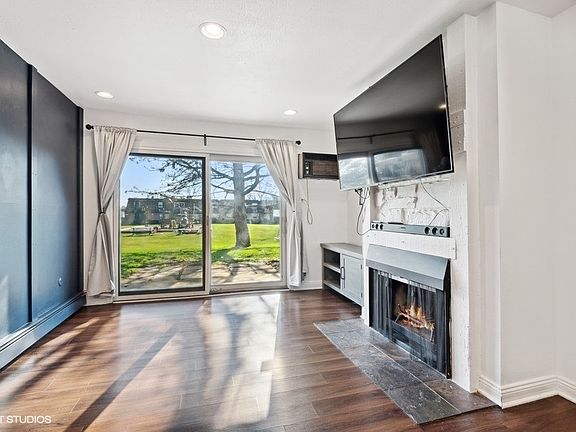 MUST SEE! Updated Move-in Ready! Beautiful first floor condo with a lovely view of the courtyard and a number of recent upgrades. Reconfigured and remodeled kitchen allows for an open and spacious floor plan. New stainless steel appliances. Ample closet space. Living room with wood burning fireplace and sliders that lead to your lovely patio and common playground. Primary bedroom with a huge walk-in closet. Maintenance free flooring throughout. Brand new bathroom remodel (2022). Freshly painted. New light fixtures and ceiling fans. Well run association with low association fee that includes heat. Fantastic location near shopping, expressway, fitness centers, restaurants, neighborhood parks--all nearby!