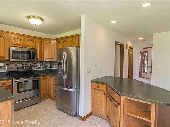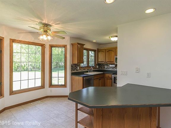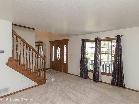 Spacious family home with Saydel schools within walking distance. Enjoy evenings on the covered deck overlooking a large backyard and creek at the property line - no backyard neighbors! Large living room area with fireplace open to the kitchen complete stainless steel appliances, including brand new fridge and microwave and new tile backsplash. New carpet and paint throughout. High efficiency insulation and home is wired for surround sound and a security system. Nice master bedroom with his and her closets; whirlpool tub, glass shower, and double sinks in master bath. Newer furnace, water heater and central AC with warranties. Per seller, more than 800 square feet finished in basement for more than 2,700 square feet of finished living space!