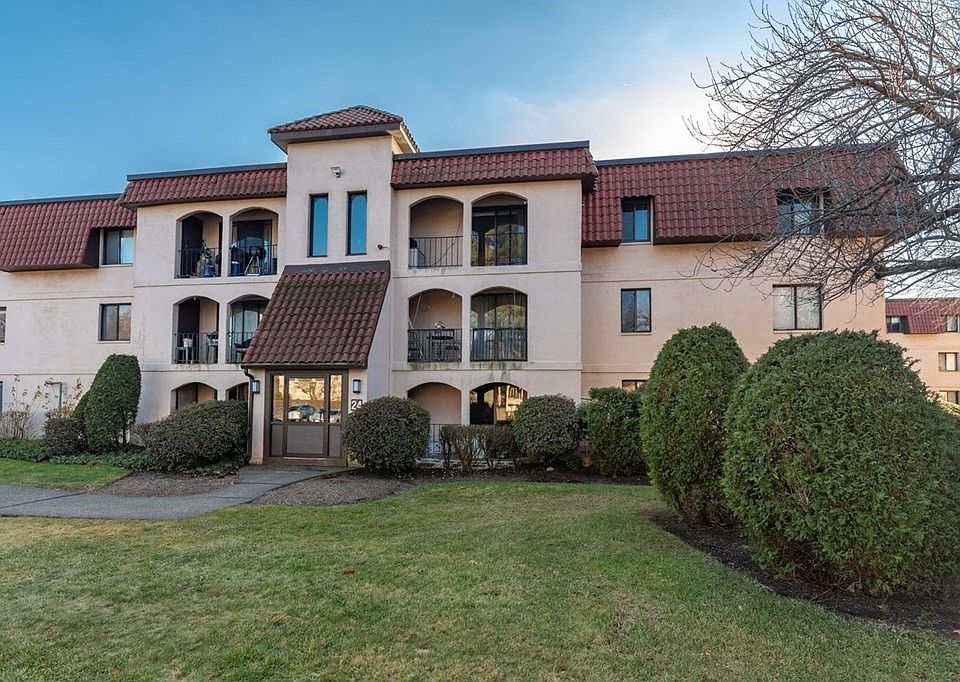 Beautiful 2 bedroom 1/2 bath MADRID SQUARE CONDO includes many updates! Enter into your 1108 sf open floor plan unit that features beautiful appliance kitchen includes Whirlpool oversized double door fridge, white cabinetry, designer tile backsplash, updated countertops & flooring! Dining room & family room are very spacious! Walk down the hallway to a large double coat/pantry closet with much storage! Common bath updated with beautiful vanity & tub surround. Primary bed room includes a large walk-in closet & beautifully designed primary bath!! Second bedroom includes large double closet and could be used as office! This condo includes new double-paned Harvey windows & new HVAC unit! Wood flooring in Kitchen, Dining Rm, Family Rm, Hallway & Second Bedroom! Beautiful view from tiled covered balcony to enjoy! Close to major routes & highways! Route 24,27,28 & 138, Hospital, Mall, Commuter Rail & Public Transportation!
