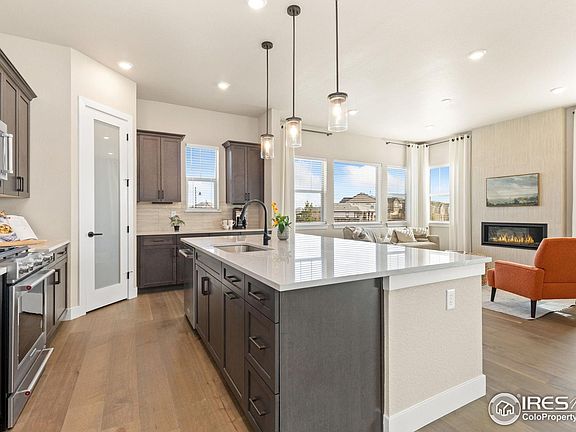 A Rare Blend of Quiet Luxury and Thoughtful Design in Colliers Hill, this home has one of the most stunning views in Colorado. Quarry Ct. is a Boulder Creek build and has never been lived in! Welcome to 685 Quarry Court, a former model home tucked into a peaceful cul-de-sac on one of the largest corner lots in Erie's sought-after West Edge at Colliers Hill. This isn't just a home-it's a lifestyle built for ease, comfort, and connection. Step inside and you'll immediately feel the difference. With main-level living, elevated finishes, and an open layout filled with natural light, every detail was carefully considered to create an inviting and functional space. The great room anchors the home, featuring a striking fireplace and seamless flow into the chef-inspired kitchen-complete with quartz countertops, an oversized island, walk-in pantry, and modern buffet bar, all designed for gathering and entertaining. The main floor includes two spacious suites, including a private primary retreat with a spa-like ensuite bathroom and generous closet space. Downstairs, the newly finished basement offers two additional bedrooms, a full bathroom, and flexible living space perfect for guests, hobbies, or movie nights.Step on your covered patio, ideal for morning coffee, sunset watching, or simply enjoying the serenity of the oversized lot. Whether hosting a weekend brunch or stargazing in the quiet night air, this space invites you to slow down and savor. Living in West Edge at Colliers Hill means more than just beautiful surroundings. With access to scenic trails, a vibrant clubhouse, parks, and two neighborhood pools, this community combines modern-day amenities with small-town charm. Just minutes from Downtown Erie's restaurants, boutique shopping, and local events, you're perfectly positioned for the best of Colorado living. This home isn't just move-in ready-it's ready to elevate your every day.