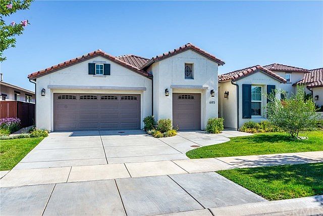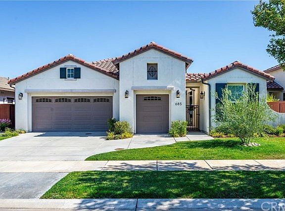 Pride of ownership with a touch of class shows throughout this immaculate home which is the largest model in Traditions, a gated adult community, at River Oaks which is located in the heart of the Paso Robles Wine Country. Entering this stunning luxury home you will be welcomed by an inviting court yard that can be enjoyed year-round. Some of the features this home offers are high ceilings, comfortable living room with mantled fireplace, custom window coverings, beautiful wood floors, and ceiling fans. The chef's kitchen has tons of granite countertops, endless custom cabinets, and an expansive island + breakfast bar. It opens to both the spacious living room + inviting courtyard and is an entertainer's dream! There is a sunny breakfast area to enjoy your morning coffee or dine your guests in the more elegant dining room. Large master suite has a sizeable walk-in closet and the master bath features dual vanities + custom tile walk-in shower. The detached casita would make a great office, art studio, library, or craft room. Beautiful rear yard with covered patio is great for entertaining and taking in the peaceful surroundings. Large 2 car garage plus garage for golf cart. All this plus you are a short walk to the clubhouse, community pool, spa, library, and a fully equipped gym and 2 poolside outdoor BBQ kitchens. This pristine gated community lends to a relaxed lifestyle and you can enjoy a round of golf at the neighboring Golf Course. Be sure to view the 3D Property Tour