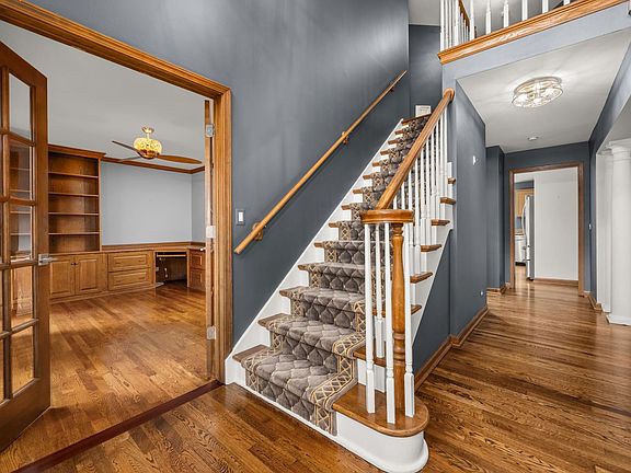 Custom-Built Two-Story in Desirable Forest Trails Subdivision. This location compares to none-backing to both the Illinois Prairie Path and Great Western Trail, offering both privacy and scenic views. Step inside to a welcoming two-story foyer that sets the tone for the home's impressive design with gleaming wood floors. A front den with built-in shelving provides the perfect home office or reading nook, while the open living room features large windows that fill the space with natural light. Double doors lead to the formal dining room with sliding glass doors opening to the expansive deck-ideal for entertaining with gas grill and heat lamp. The chef's kitchen boosts ample cabinetry, a spacious island with seating, gleaming granite countertops, and a double oven and a charming window seat over looking the backyard. It flows seamlessly into the family room with vaulted ceilings, where a stunning Jotul wood-burning fireplace is flanked by custom bookcases, complemented by skylights and a large picture window overlooking the backyard. A spacious mudroom with double closets connects to the three-car garage, offering plenty of storage and functionality. A conveniently located half bath completes the main level. Upstairs, you'll find an impressive primary suite featuring vaulted ceilings and an adjoining sitting room with its own closet-perfect for a private office, nursery, or relaxation space. The fully updated primary bath is designed to impress, showcasing double sinks, illuminated vanity mirrors, a walk-in closet, a soaker tub overlooking the backyard, and a luxurious shower with body sprays, rainfall shower head, and handheld wand with glass doors, detailed tile surround, and heated tile floors. Three additional generously sized bedrooms-each with vaulted ceilings, large closets, and new carpet-share a beautifully updated hall bath featuring double sinks, a tiled tub surround with glass doors, tile floors, and modern finishes throughout. The fully finished basement offers exceptional additional living space, including a large recreation room, a fifth bedroom, a third full bathroom, a laundry room, and a dedicated storage room-perfect for guests, hobbies, or extended family living. Located in the sought-after Forest Trails Subdivision within highly rated District 25 schools and just minutes from parks, forest preserves, and Wheaton Academy-this home offers the perfect blend of comfort, craftsmanship, and convenience. Updates include: 2025 - New carpet (bedrooms/stairs) and new washer/dryer; 2019 - Bathroom remodels; 2018 - Kitchen cabinets painted; 2017 - New front door; 2015 - Pella windows , Painted cedar siding; 2007 - Roof with 50-year shingles. If you're seeking a close proximity to all that West Chicago has to offer, look no further! Make this your next move!