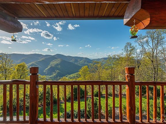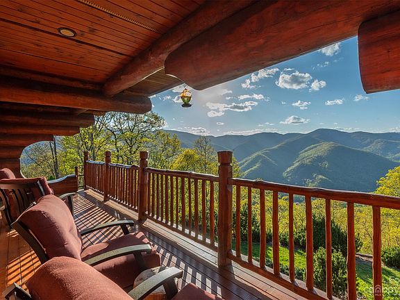 With unobstructed views of Cold Mountain, Shining Rock Wilderness, Lake Logan with its surrounding mountain ridges, Canton, and the Pigeon River Valley; this mountaintop chalet is a luxury, custom-built retreat that has to be seen to be believed. Nothing does this property justice like an in-person visit to see the astounding views and quality of construction. This luxury-built mountain chalet has triple-insulated, triple-lock Scandinavian doors and imported logs from British Columbia, Canada. It sits atop a mountain ridge at 3,900 ft elevation. On the 34+ acres of private mountain land, there's even rumor of a private trail that takes hikers directly to the top of Cold Mountain, which sits at 6,030 ft elevation in Shining Rock Wilderness. Gathering spaces abound in the spacious, open floor plan dining and Great Room with vaulted ceilings and two-story stone fireplace. Additional entertaining spaces include a cozy terrace-level family room in the basement and loft space.