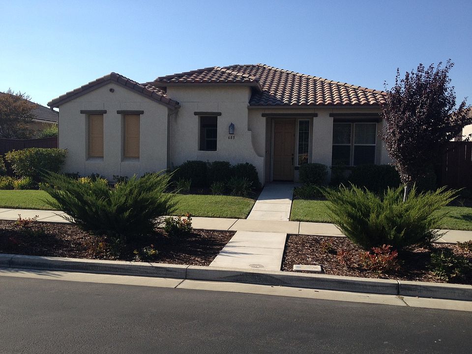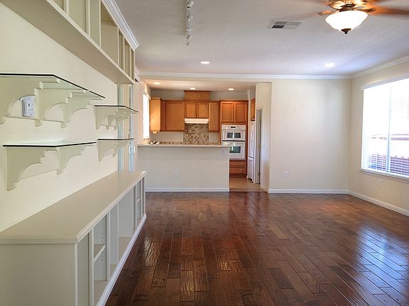 This Beautiful Home in Traditions at River Oaks boasts a great open floor plan with well chosen upgrades. This immaculate home includes gorgeous hard wood floors in the great room, custom built-ins, crown molding, gas fireplace & custom lighting. Bright open kitchen with solid surface counter tops, tile floors, built in appliances, decorative tile backsplash & a breakfast bar. Sliding glass doors from both the great room and the master bedroom take you to the beautiful private back yard with a covered patio, ceiling fan, water fountain, slate floor & its already plumbed for a gas barbecue. Lots of storage cabinets in garage. This wonderful gated adult community has so much to offer. Enjoy the beautifully furnished clubhouse with a fully equipped gym, heated pool, jacuzzi, covered barbecue area & there's a golf course across the street from Traditions.