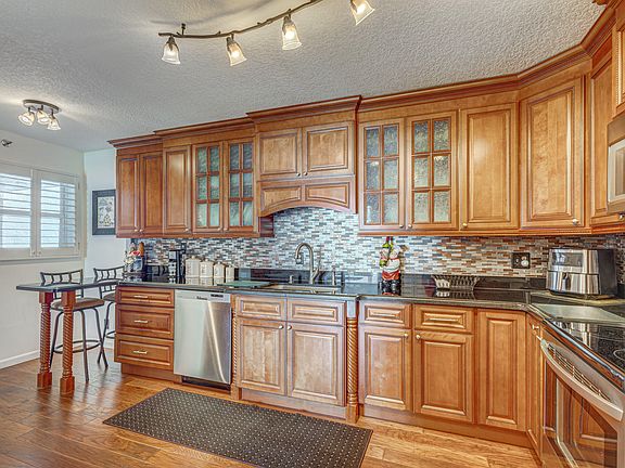 Enjoy South Florida living at its best in this stunning 3-bedroom condo completely renovated to perfection! This rarely available 2nd floor corner unit offers sweeping views of the pool, lake, and golf course. Impeccably maintained and beautifully appointed, with over 1,400 SF, this exclusive residence features hurricane IMPACT windows, textured ceilings (no popcorn), luxurious engineered wood floors in kitchen, and tile throughout (no carpet). Impressive upon entry, this re-imagined open floor plan, offers tons of natural light, spacious dining area and living room with elegant light fixtures, custom closets and built-ins (currently used as enormous pantry), overlooking tranquil views of the private community pool (each building has its own pool!) Masterfully designed gourmet kitchen offers an abundance of wood cabinets with custom molding, built-in spice rack and tucked away garbage receptable, elegant black Indian granite counter tops, sparkling glass tile backsplash, stainless steel LG, GE and Maytag appliances, Plantation shutters, and separate laundry closet with full size washer and dryer. Generous master suite (with huge walk-in closet and Plantation shutters) and luxurious bathroom features elegant custom vanity, dual sinks, modern hardware and fixtures, large walk-in shower with lovely tile carried throughout with decorative tile design and frameless glass shower door. Accommodating 2nd guest bedroom offers tons of closet space; stunning guest bath is beautifully renovated with custom vanity, undermount ceramic sink, updated hardware, lighting, and fixtures, all surrounded by brilliant marble tile carried throughout your combo tub/shower with decorative tile inlay. Spacious 3rd bedroom, currently used as an office/den, is conveniently located off the living room and perfect for overnight guests to enjoy their own private quarters.