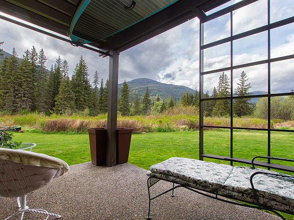 Discover the ideal retreat for year-round outdoor enthusiasts with this renovated waterfront townhouse on The River of Golden Dreams. Enjoy Alta Lake beach access, and proximity to The Valley Trail. Walking, hiking, cycling, and water sports in summer, and skiing and skating in winter, this location offers it all! This sleek, contemporary studio features in-floor heating, new windows, and a sliding glass door to the covered patio. The modern kitchen boasts two-tone cabinets, a quartz countertop, and stainless steel appliances. The luxurious bathroom includes a glass walk-in shower, and there's an in-suite washer/dryer for added convenience. Unwind with a glass of wine on the sofa by the wood-burning fireplace, enjoying serene mountain and river views.