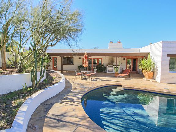 Amenities abound at this stylish remodeled territorial home in the Foothills! Corner lot in top rated school district sits on a quiet cul de sac, boasts an enclosed backyard complete with Pebble Tec pool, grass area, automatic irrigation system, outdoor kitchen, pond, fountain and dog run. Inside is equally posh: updated kitchen, luxury appliances & granite countertops. Formal living and dining rooms, French Doors to covered patio, two car garage with workshop, dual water heaters. Home was built to maximize views of sunsets, sunrises, the Catalina Mountains, and cityscape. Master suite features Roman bath with dual showers, Italian tile, a walk-in closet with built-in shelving, French Doors to the backyard, as well as a den / office with second wood burning stone fireplace. No HOA!