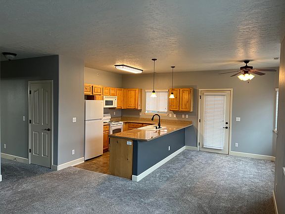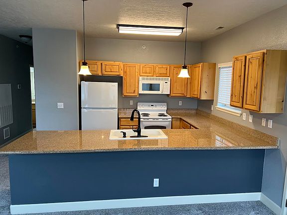Two bedroom two bath condo centrally located in CDA. Home has a open living area, vaulted ceilings in Master suite, with walk in closet. Home has large granite peninsula countertop in kitchen, with appliances that include fridge, range/oven, dishwasher, microwave, and washer/dryer hookups. Outside of home has a covered patio with storage, single car garage, clubhouse with fitness center/steam room. &100 for W/S/G, and is available for showing now. For rental applications, please email Rental app for me AT g mail dot com