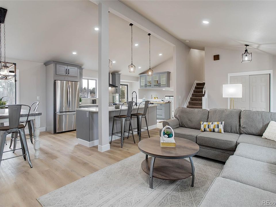 LOCATION! LOCATION! LOCATION! Highly sought after neighborhood. Turn key! Gorgeous 4 Bedroom 4 Bathroom, professionally remodeled home in a cul de sac facing a greenbelt and the Golf course! Beautiful Vaulted 12-foot ceilings with an open layout so entertaining is seamless from living room, dining room and kitchen. The kitchen boasts an oversized high end quartz island with ample seating and a live edge butcher block counter with wine fridge. Stainless steel appliances, all new cabinetry, doors, interior lighting, flooring, carpet, tile and fixtures. Open floor plan for large family gatherings. Freshly painted interior with a lovely color palette with endless possibilities for your own style. Additional family room with top-of-the-line gas fireplace with remote and stone surround. The owner's suite has two closets, an en suite with double vanity, barn door and window seating. Two additional large bedrooms upstairs with an additional full bathroom. All bathrooms have been updated with designer tile, niches, vanities, lighting, mirrors and flooring. The walk out basement includes a bedroom, full bathroom and a bonus recreation room with French doors. Easy access to the outdoors from every level of this home. Lovely nature setting. Patio, terraced landscaped back yard and an additional covered patio from the walk out from the lower level. Perfect for extended guests, in-laws or home office. Exterior recently painted. This home comes complete with a High efficiency Furnace and A/C. Enormous lot, ready for swing set or putting green and outdoor fun. HOA permits property to be fenced. Enjoy the Pinery Country Club Living, Bingham Lake, Pinery, Timbers and Cherry Creek Trails. 20 minutes from Tech Center, close to I25 and about 10 minutes from 470.