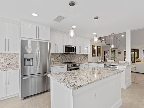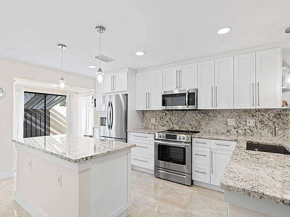 GORGEOUS VILLA | FULLY UPDATED 2022 | END UNIT | ENCLOSED PATIO WITH AC | Bright Open Floor Plan | Marble Flooring | Vaulted Ceilings | LED Recessed Lighting | Winding Staircase | Stunning Kitchen | 42'' White Shaker Cabinets | Granite Counters and Backsplash | Large Island | S/S Appliances | Barstool Seating | Primary Bedroom with Walk-In Closet | En-suite Bath with Dual-Sink Vanity | Oversized Walk-In Shower | Guest Bath with Shower/Tub Combo | Florida Room with AC | Fenced Front Patio | Tropical Backyard | Designer Landscaping | Community Pool | HOA COVERS ROOF & INSURANCE | Prime Location | Minutes to Highland Beach, FAU, Downtown Mizner Park, Atlantic Ave | Fine Dining & Shopping | A+ Rated Schools | AC 2014 | Tankless WH | ROOF 2007