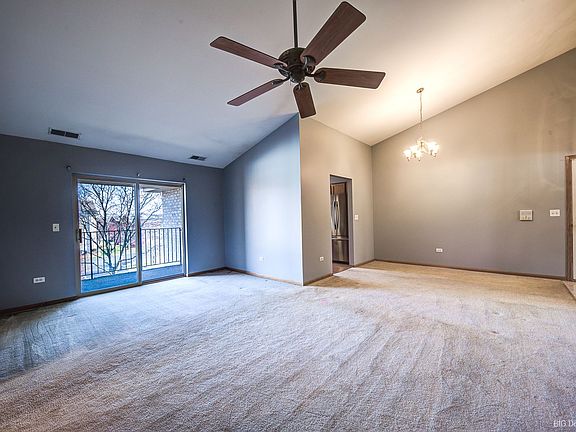OPPORTUNITY AWAITS! RARELY AVAILABLE, BRIGHT & SUNNY 3RD FLOOR PENTHOUSE CONDO IN RIDGE POINT. NESTLED BACK IN A QUIET CUL-DE-SAC OFFERING TONS OF PRIVACY JUST STEPS AWAY FROM FOREST PRESERVE WALKING AND BIKING TRAILS. THIS FRESHLY PAINTED & SPACIOUS 2 BED 2 FULL BATH UNIT FEATURES VAULTED CEILINGS GIVING AN OPEN AND AIRY FEEL. HUGE LIVING ROOM WITH DINING ROOM COMBO. MASTER BEDROOM HAS DOUBLE CLOSETS AND FULL BATH WITH WALK IN SHOWER. LARGE KITCHEN PULLS IN TONS OF NATURAL LIGHT OFFERING AMPLE CABINET AND COUNTER SPACE WITH ACCESS TO THE LARGE BALCONY WITH STORAGE CLOSET. GREAT SIZE LAUNDY ROOM & 1 CAR GARAGE (#51). ASSESMENT INCLUDES WATER. THESE UNITS DO NOT COME ON THE MARKET OFTEN SO SCHEDULE YOUR VIEWING TODAY! 1 YEAR BASE PLAN HOME WARRANTY INCLUDED. CONVENIENTLY LOCATED NEAR GROCERY STORES, RESTAURANTS, PUBLIC TRANSPORTATION, & INTERSTATE ACCESS.
