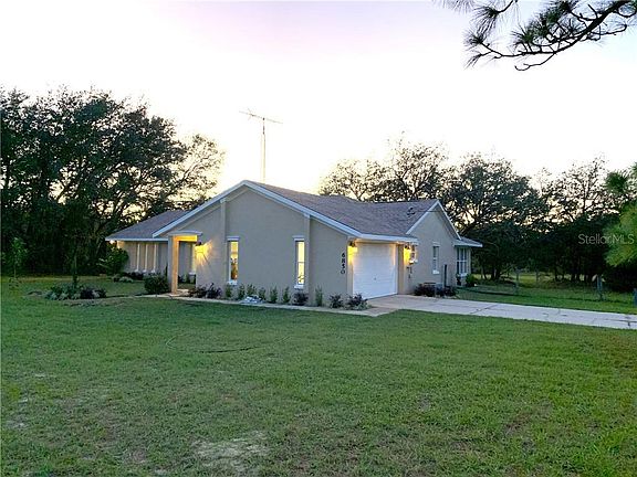 Amazing move in ready 1904 sq ft single family home with 3 bedrooms, 2 baths, 2 car garage, nestled on 5.4 acre lot cleared and fenced. Newly renovated in 2019 with upgrades galore! Home features an open and split floor plan, granite counter tops throughout, mixture of newly installed laminate flooring with tile and brand new carpet in bedrooms, ceiling fans, fireplace, dining area, living room and family room. Recessed lighting in family room, living room and dining room. Kitchen features extensive upgraded lighting, island with room for seating, new cabinets, beautiful under cabinet lighting, upgraded faucet and "9" deep sink, disposal, stainless steel appliances (including refrigerator) and crown molding. Master bath has dual sinks, walk in closet, tub/shower combo, double vanity. There are beautiful French doors to the enclosed porch (Florida room) with lots of windows to enjoy the outside view. Home has a two car garage with separate inside laundry room with deep laundry sink. Also included is a large shed for all your toys or private workshop. In a quiet friendly area.