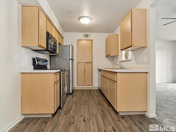 Turn-key top floor Silver Creek Condo with a detached garage (#49), covered carport (#286) and adjacent to ample open parking. This sunny unit is in a quiet, peaceful part of the complex with easterly views and easy access to I-80. The spacious living room area has vaulted ceilings with a ceiling fan and slider to the private covered balcony. Another added bonus is new flooring throughout and all new kitchen appliances.