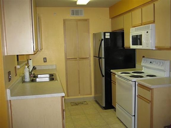 3 Bedroom unit on upper floor; 2 bedrooms have walk in closets. New stainless steel refrigerator and washer and dryer included in sale, along with garage unit and storage unit. New built in microwave and kitchen faucet. Unit is in good shape. Pool, spa, workout room, tanning bed and business center are all included. HOA dues include water, sewer and basic cable. Subject to servicing lender's short sale approval.
