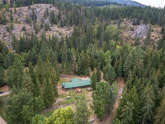 Uncover an unparalleled opportunity with this scenic 20-acre property, just minutes from downtown, situated at the end of a tranquil dead-end road. Explore the array of features, including three outbuildings in fenced fields for animals such as goats, alpacas, and horses. A three-section fenced chicken coop, a seasonal creek with a waterfall, fruit trees, and vegetable gardens enhance the property's charm. The remaining acreage opens up to hiking trails that connect to the FlyHills recreational area, offering outdoor adventure right at your doorstep. Step inside the remodelled log home, where $250,000 has been invested in renovations over the past three years. Appreciate the exposed logs, a custom stone wall with a live-edge wood mantle, vaulted ceilings, luxury vinyl plank, and tile flooring. The spacious kitchen features an island and solid wood cabinets. The primary bedroom includes a flex room suitable for a nursery or office. The upstairs bedroom loft is a delight, featuring a sitting area, three pivoting luxury skylights, a large closet, a separate entrance, and a private bathroom for guests or a potential bnb. Outside, discover a covered storage area, a workshop, and a detached building serving as an office and recording studio, adding to the distinctive appeal of this property. Don't miss the opportunity to experience these incredible features firsthand!