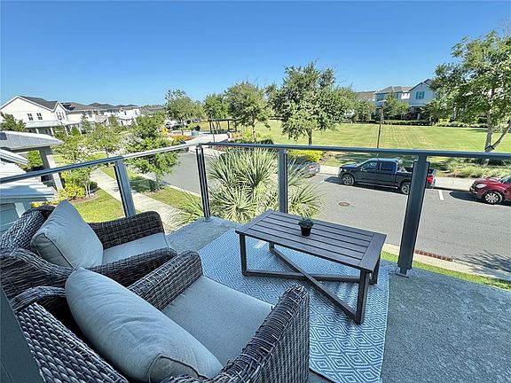 This amazing highly upgraded home by Ashton woods will make you feel right at home. As you walk towards the front of this gorgeous home you will notice how the curb appeal will draw you in...quite mesmerizing! It sits directly facing one of the most beautiful parks in all of Laureate Park at Lake Nona....not only does the home face the park but it has a glass balcony on the second floor that faces the park and is a great place to escape for your morning coffee or perhaps an evening libation! This home boasts plenty of space and has a flex room that can be used as an office/den, formal dining or even separate formal living as the home has a grand family/living adjacent the kitchen so the choice is yours....Kitchen has all of the goodies you would love to have including White cabinets and Quartz countertops 42 inch uppers and an absolutely gargantuan island to relax and entertain friends and family. Master is upstairs with two other bedrooms including the glass balcony! This home also has a garage apartment that could also be rented separately for those who may want Mom/Dad or perhaps a family member or friend to live close by...some even use these as a work space to separate home from work in another environment. This home is a short work to Nemours Children's Hospital and a quick trip to the VA, Boxi Park, USTA, Orlando International Airport, and soooooo much more. Don't miss out on this one folks! Great Home, Great Neighbors and wonderful location! Oh, and the entire yard is fenced in to help keep the kids corralled as well as your furry friend!