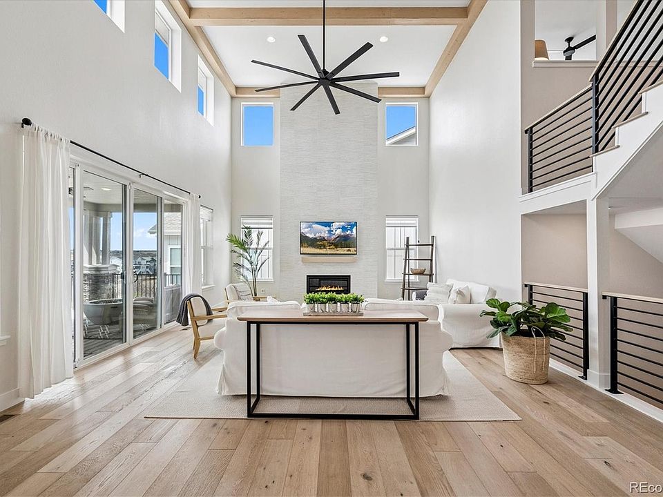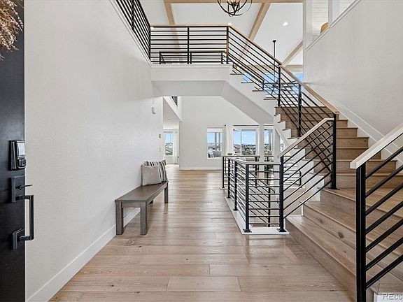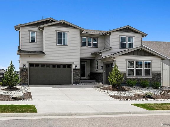 150K BELOW RECENT, SAME MODEL COMP! Experience Colorado living at its finest in the highly coveted Canyons neighborhood, a master-planned community that offers an incredible lifestyle! This stunning 5 bed + office, 6 bath Hyde model by Shea Homes is a perfect blend of elegance and spaciousness, featuring upgrades at every turn. With upgraded sliders opening to the expansive covered deck and beautiful wood flooring added to throughout the entire upstairs, this home offers unparalleled value, all while backing onto open space with mountain views. As you step into the grand foyer, you're greeted by an expansive, entertaining kitchen complete with a secondary wet bar and storage, a second dishwasher and fridge which leads to enormous walk-in pantry. The great room boasts soaring ceilings over 20 feet high, allowing for awe-inspiring views and access to a large covered deck. Upgraded modern railing brings you up the extended wood stairs to discover the luxurious primary suite featuring a soaking tub, his and hers closets and an upgraded shower. Three additional bedrooms are also upstairs, each with their own en-suite full bathrooms, providing maximum comfort and privacy. Finally, a flexible loft space allows for a wide range of uses. On the main floor, you’ll also find a fifth bedroom, a three-quarter bathroom and a stunning office with 10-foot ceilings and an abundance of natural light. The meticulously designed landscaping saves you the additional cost of building new. A walkout basement presents a blank canvas, allowing you to create the ideal space that meets your specific needs. Tesla Charger already installed. Extra options and upgrades throughout the home. As a resident, you'll enjoy access to the Exchange coffee house, a fantastic pool, parks, the Canyon House, fitness center and more! Don't miss the opportunity to own a home on one of the most sought-after streets, featuring the most popular model from Shea’s impressive collection.
