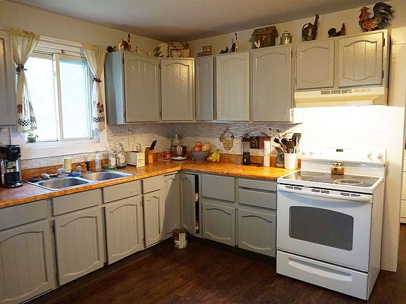 Great mini-farm in Eastern schools! 5 acres with a 6 stall barn and two additional outbuildings. This 3 bedroom, 1 bath home with open concept has a 4 year old roof on home, laminate flooring through most of downstairs, nice size kitchen with tiled backsplash and a deck off the side. Well pump also replaced in last 4 years. Plenty of potential and possibilities! 2 acres are pasture and 2 acres are a hay field