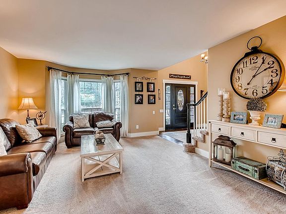 Stunning Noble Ridge in Castle Pines, premium lot, mountain views! Rare oversized 3 1/2 car garage, finished walkout basement with new deck. Main floor: curved front staircase, hardwoods, formal living and dining rooms, updated kitchen, 2-story family room with soaring windows to enjoy the amazing views and sunsets, large trex deck, back staircase. study with French doors, powder bathroom, spacious laundry room. Gourmet kitchen, granite, stainless appliances, painted cabinets. Upstairs: master with coffered ceilings, 5-piece bathroom, cedar lined walk-in closet, 3 additional bedrooms with 2 full bathrooms, one bedroom with ensuite bathroom. Finished walkout basement: media room, wet bar, bedroom, bathroom, flex area, workout area, storage area, Large backyard, relax in the hot tub, storage shed included. Newer windows, roof, new trim, interior paint. Smart Home, WiFi Connected thermostat, water heater, sprinklers. Award winning schools, close to I-25, Park Meadows, DTC, parks, trails.