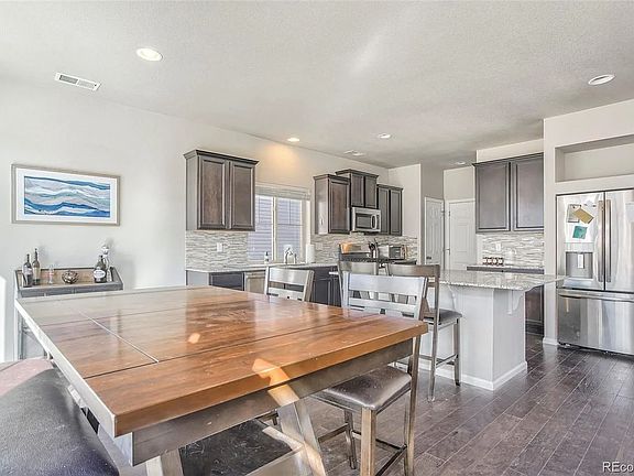 This beautiful house boasts a open floorplan with 3 bedrooms and 3 bathrooms in desirable Banning Lewis Ranch. Gorgeous dark wood laminate flooring on the main level finished off by a chef's gourmet kitchen. Huge kitchen island including granite countertops, matching stainless steel appliances, and a gas range/oven. Upstairs you will enjoy 3 spacious bedrooms with a bonus room right off of the master bedroom. Upstairs includes an almost new washer and dryer set. Don't forget the 30'x10' stamped concrete patio in the backyard and all of the wonderful amenities that living in Banning Lewis Ranch has to offer. Available for rent right away. Fourth bedroom is non-conforming, can be used as an office, or owners can add a closet, door to make it conforming bedroom.